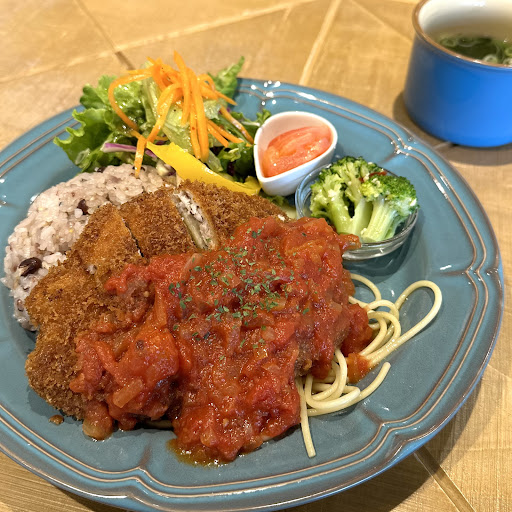 • トマトソースカツプレート 1,100円 •Plus プレート1,500円 (ハンバーグ・エビフライ・からあげ・味噌汁) ※全てのランチプレート スープ付き +100円 五穀米に変更出来ます +280円...