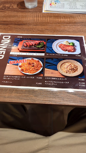 前の通りに「Dinner」「レストラン」って書いてますけど、とてもそのようなメニュー構成ではありません。