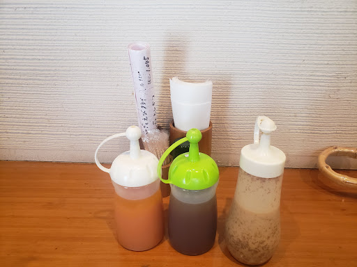ドレッシングは適当にカウンターに置かれていて、何の説明も案内もありません。 カウンターの反対側の端っこに置かれたドレッシングはどうやって取るのでしょうか?