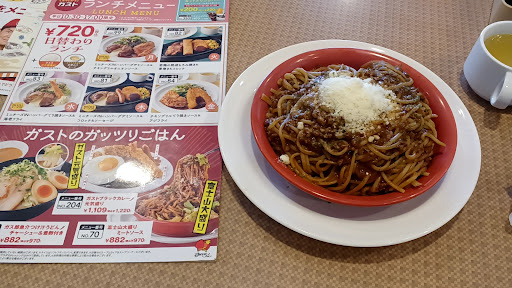 Read more駐車場、右折しないと入れませんでしたので、少し入りにくいかな?と思いました 駐車場の入り口、少し狭いです 出て来る車があると、確実に入れません 向かいに、TSUTAYAがあるので、レンタルしてから行くのに丁度いいところです 店内は、21時過ぎで平日でしたが、小さいお子さんが騒いで、走り回ってました 親御さんが注意するところではありますが、店員さんも、注意してあげないと、他のお客様と接触して、ドリンク(熱い物)をこぼしたりしたら、誰の責任になるのか?と思いました 食事も、時間的な物かもしれませんが、コーンスープは、かなり冷めてました 他の料理についても、他のガストと比べて程度が低いように感じました 氷も無くなってましたが、こちらが言うまで追加してませんでした 会計も、なかなか来てくれず待たされました 総合的に他の店舗...
