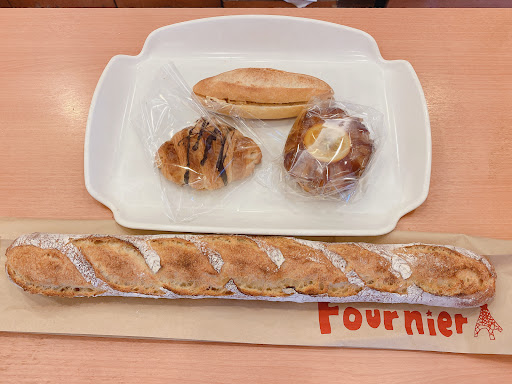 2017/12/16 土曜の朝7時半ごろに前からいきたいと思っていた所に機会があったのでうかがうことができました。 チーズフランス、メロンパン、粗びきポークフランク、おいもあずき、ウィークエンドを購入。 メロンパンは表面の生地はカリカリになってますが、たべると生地が薄いので耳の部分しかそのカリカリ感は感じられないです。味は十分美味しいですが普通です。 粗びきポークフランクはその大きく太いソーセージのインパクトがすごくておもわずトレーに入れてしまったのですが、味も期待を裏切らずとても美味しいソーセージでパンとのバランスもちょうどよく美味しいです。 おいもあずきは上に胡麻がふんだんにふられており、軽くトーストして食べるとあずきとおいもの甘さとゴマの風味がとてもいい案配でした。美味しかったです。 ウィークエンドは中はバターケーキでしょうか固めのしっかりしたケーキにレモンのグレースを底面以外全周にかけられており甘過ぎると感じる方も居るかも。しかしながらレモンの風味酸味でそんなに甘さは感じず食べることが出来ると思います美味しいです。 チーズフランスは中にもブロックのチーズが沢山入ってます。私はチーズ大好きなので美味しくいただきました。チーズが好きなら一度は買うべきかと思います。 まだまだ他にも食べたいものが沢山あったのでまた機会があれば今度は人気のアンジュというパンも買って食べてみたいですね。