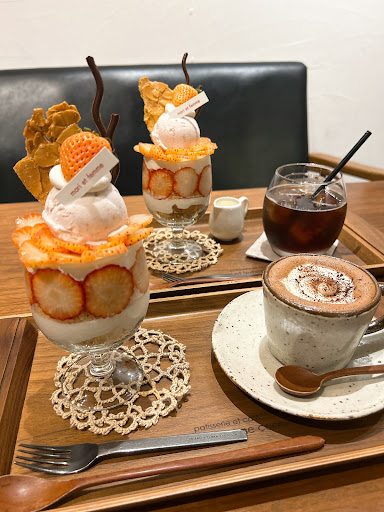 ✅白いちごパフェ ⚠️季節限定⚠️ (¥1,350) ✅アイスコーヒー (¥440) ドリンクセットで100円引き