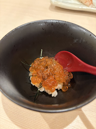 茶碗蒸しベースは良いが握りにイクラがあるなら茶碗蒸しにイクラはいらない。 せっかく具もなくシンプルに良い出汁がしたのにイクラの生臭い香りで台無しだった。 だったら三つ葉かメニューに芽葱があったのでそれでいい。