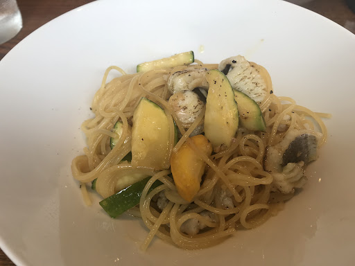 口コミほど美味しく感じれませんでした。 念願叶って伺いましたが、接客、味と中途半端な印象でした。値段相応かもしれませんが、もっと良くできるだろうにと残念な気持ちになりました。 まず入店して、いらっしゃいませがない…。 何名ですか?だけ。忙しかったのかもしれませんが、うーん食べる前から嫌な予感。メニューの説明もぞんざい。水が中々出てこない。 前菜のサラダのアクが強く、酸味の強い自家製ドレッシングだと苦味を強く感じ、沢山野菜を使っているのに野菜の旨味や甘さを感じられなかった。 トマトのコンポートは美味しかった。ハーブは要らないなぁ。味が強くですぎてます。コーンのスープにオリーブオイルを入れすぎ。 フォカッチャは提供前に温めてられ、軽い食感で食事に合いました。鱧とズッキーニのパスタのハモは軽く炙られていて柔らかな食感で美味しかった。ただパスタの塩加減が薄くて全体的に味がぼやけていてペペロンチーノという割にニンニクや唐辛子が効いてなく、後半あきてきた。 食べたらすぐに皿を片付けにきてバタバタと落ち着かない。会計を席でするのもこちらが席を立ってから伝える。だったら皿を片付けるときに伝えるべき。慣れていない感じ。前菜付きのパスタランチはこの界隈は何軒かありますが、その...