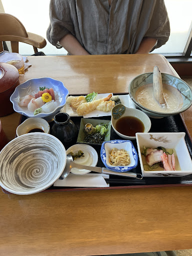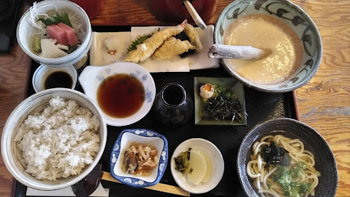 Read more平日昼時に伺いました。 常連さん多そ(笑) ここのとっておきは、麦とろ飯です😏 おひつで麦飯が先に届き(なかなかの量。軽く盛って茶碗に3杯ほど?)天ぷら、うどん、刺身、小鉢、漬物、そして待ちに待ったとろろ🍠 ネバネバとろりなのに、さらりでうんまい。うどんにも乗せるといいよーっとアドバイス。麦飯にかけたりうどんにかけたりボリューム満点で腹パンでした😏 麦とろ飯とうどんだけでいいくらい。ほんまにヘルシーなんやろか…🤣 駐車場も広くて入りやすかったでーす