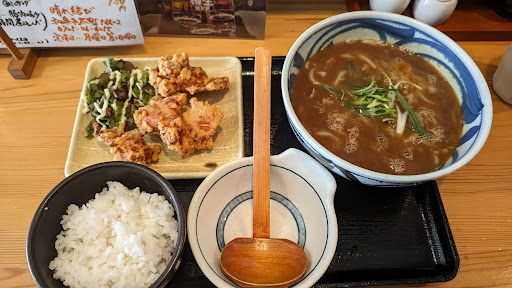 Read more土曜日の13時頃に訪問。 テーブル席が2つと、あとはカウンター席。先客は二人連れが二組ほどで、すぐに座れました。 カウンターに座って、鶏の唐揚げセット(カレーうどん)を戴きました。 年配のマスターと給仕の方二人で黙々と仕事をされてますが、笑みを絶やさず、良い雰囲気でした。 注文品はカウンター越しではなく、席まで持ってきていただける丁寧さ。 カレーうどんは麺は細く稲庭うどんのようでしたが、コシがあり美味しかったです。 唐揚げも美味しく、全体的にボリュームがあり、通常の男性なら十分な量かと思います。 いつかモツ鍋も...