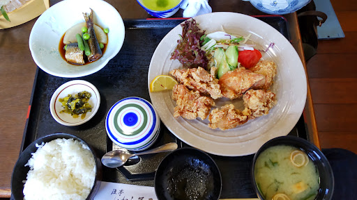 写真の唐揚げ定食も塩系で少しさっぱりで、くどくなく沢山食べられて凄く美味しいです。唐揚げとくると値段は少し高いですが、その分唐揚げの量も多く、他にも煮付けや茶碗蒸しとかも付いてるので、コスパはかなり良いです。