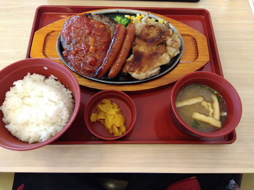Read more久しぶりに行きましたが、お子さまランチのご飯の量が少なくなって、ハンバーグも小さくなった気がします! 子供達はセット追加したフリードリンクで、スープを先に飲んでいたのと、大人のおかずをシェアしたので、お腹はみたったようですが、保育園の年長さん以上の子供にはランチのみでは足らないかもです! プレミアムハンバーグは、お肉の味がしっかりあって、普通のハンバーグより美味しかったです! 照り焼きチキンは分厚くてガーリックの匂いと、熱々の鉄板の音が食欲をそそりましたが、ソースが塩辛くて残念でした! 大好きなコーンスープの味が薄くなってた...