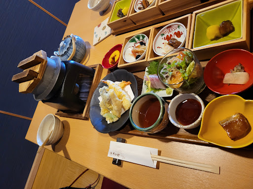 Read more母と義妹とランチに伺いました。 和食屋さんですがステーキランチにしました。 カゴに入ったたくさん小鉢、天ぷら、釜炊きごはん、ステーキデザートコーヒー。 量もちょうど良く、おいしかったです。 出来立てお釜のごはんはふっくらみずみずしくとてもおいしかったです。 ごはんの量がが多かったので、声をかけたら、お持ち帰りにしてくれました...