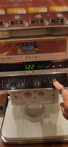 Read moreお昼は混み合います。駐車場は隣のファミリーマートと同じですが、昼ゴハン食べて車で休憩する人もいるので、なかなか空きスペースがありません。 定食のゴハンおかわりは機械でできるので、とても便利です。 [追加] 先日、再訪しました。11:29に食券発行で11:52にしょうが焼き定食が出てきました。昼時にこの遅さは困ります。途中で店員さんがこの人、何を注文してたのかチケットを確認しに来てました。周りの人はもっと早く提供されていたので何かの手違いだと思いますが… でも、しょうが焼きの豚肉が黒く焦げている割にはタマネギが生焼けでし...