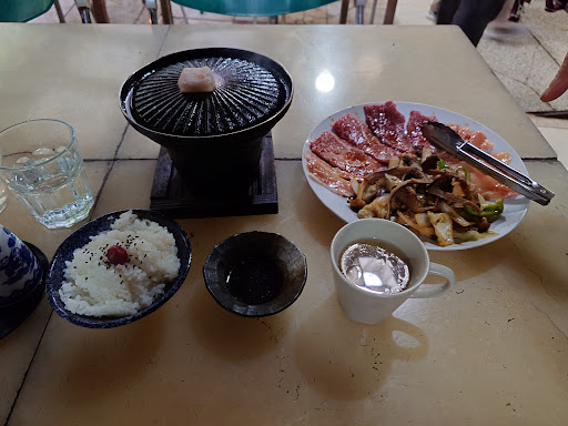 Read more2025/5 家族で2度目の訪問。 前回は『特撰和牛と犬鳴地鶏とトントロとキノコの焼肉』を注文しましたが地鶏が美味しかったので、今回は『犬鳴地鶏とキノコの焼肉』を注文しました。 失礼ながら店構えは少々不気味なほどボロボロですし、高齢のスタッフさんは配膳も中途半端なのでサービスが良いとは言えませんが、高齢で入れ歯の母が「食べ易くて美味しい」と言うぐらい地鶏が柔らかくて美味しいです。ご飯をおかわりしたくなるほどボリュームもあります。 ゆっくり味わって食べたいのですが、固形燃料が燃え尽きてしまう前に急いで焼かねばならずそれが残念です。
