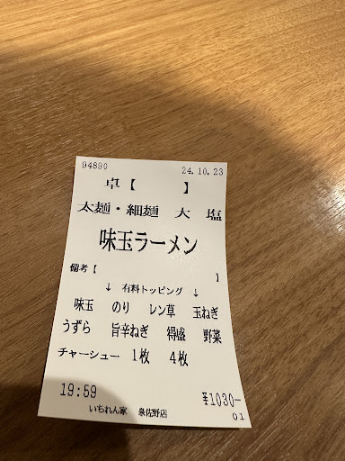 Read more背脂を補給したくラーメン屋を探していたら、何やら家系ラーメンがある事を発見🍜車で行くと大きな駐車場で停車しやすく安心です🚗車を停車後お店に向かおうと歩きだしたら、家族連れが食事を終えて出て来て車に乗り込んでいる所に店員さんが忘れ物を届けに、走って来ているのを見ました。 間に合って良かったなぁ😮💨なんて思っていたら、届けてもらったお客さんが「ありがとう」って届けてくれた店員さんに伝えていたのが聞こえました。お店に戻ろぉとせていた店員さんが言葉に気がつき足を止めて声を掛けてくれたお客さんに向かって、『ありがとうございました。また、お待ちしております』と、90度ぐらい頭をしっかり曲げて挨拶をしているのを見て何て教育の行き届いた店なんだと感心したと共に早く食べたいワクワクが込み上げて来ました🥹 頼んだの、醤油ラーメンです。 味の濃さ、麺の硬さ、油の量を好みにチョイスが出来るので、全てMAXの濃いめ、硬め、多めで注文です🥰 こちらには、ライスバーがあり白米無料で、キューちゃん、刻み生姜があります。調味料は、ニンニク、豆板醤、ブラックペッパーなどラーメンを自分好みにカスタマイズ出来るお友達が揃ってます😍ライスバーでご飯を準備し、ニンニク、豆板醤を入れラーメンに入っている海苔をスープに浸した物で巻いて食べる準備をしたら心を落ち着かせてラーメンの着丼を待ちます🫥着丼と同時に食べたい気持ちを落ち着かせスープを一口🕰️ 豚骨醤油の味がしっかりしながら辛くないないマイルドな豚骨感がグッドです😊ゆっくりと、麺、スープ、麺、スープと食べ進めて待ちにまった海苔をスープにつけてご飯を巻いて食べる時が来ました😎 うまー🐎こんな罪悪感を噛み締めながら食べられるのは最高です🤩 ラーメンにも、ニンニク、豆板醤、ブラックペッパーなど入れながらカスタマイズして食べて最高の時間を堪能しました🙃 二次元バーコードから、来店回数で何やら特典がもらえるらしいが、たまたま寄ったので登録してませんが、近くに来た際はまた訪れたい...