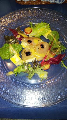 ホタテ貝柱のムニエル ホタテって正直他の味が染み込みにくいと思うんですよ、ここの貝柱もとても良い感じに味付けされて火入れも完璧ですがホタテの内部の味はやはりホタテでしか無かったんですね しかし下に敷かれているポテサラ(多分ポテサラではない)が周りの濃いめのソースを巻き込んでホタテにしっかりと味を与えておりたべたことのないホタテになってました、とても美味しかったです