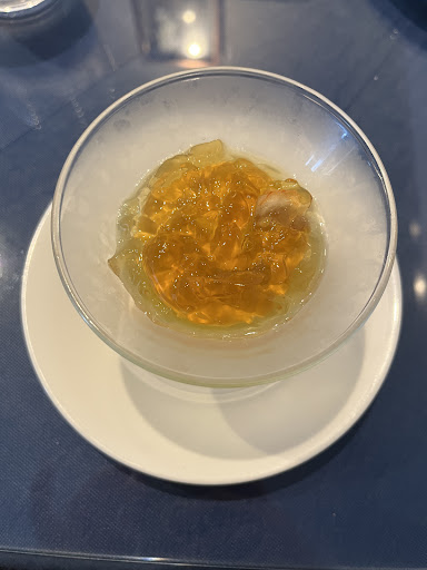 コンソメのゼリー コンソメのゼリーなんて初めて食べましたがめちゃくちゃ美味しかったです 下の方にはプリンの様なものが沈んでおり味のバランスがとてもよかったです