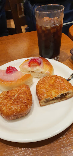 这个店地点也方便,近关西机场,就坐落在泉佐野地铁站外侧,很容易找到,就在71对面,这里面包选择非常多,甜的咸的也有,有英语餐牌,还有多种饮料选择,我点了拿铁和一柸苹果茶,然后点一些喜欢的面包,环境简单清优,提提大家,基本上全部在日本店都是要自已放回垃圾及用具,不要忘记人家文化,味道不错,自游行的这里不错,很方便,性价比高,推荐来试试 This store is also conveniently located, close to Kansai Airport and just outside Izumisano Subway Station. It’s easy to find, just opposite 71. There are a lot of bread choices here, including sweet and salty ones, English menus, and a variety of drinks. To choose, I ordered a latte and a bottle of apple tea, and then ordered some bread that I liked. The environment is simple and elegant. I would like to remind everyone that basically all Japanese stores have to put away garbage and utensils by themselves. Don’t forget their culture. The taste is good. It’s a good place to travel on your own. It’s very convenient and cost-effective. I recommend...