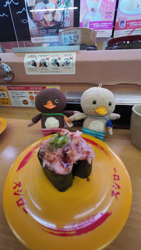 Read more1階は駐車場なので階段をのぼり2階が店内になっています。エレベーターやスロープはないです。各テーブルは色の名前でわかれています。自分の席の色の名前が書かれた器に注文した皿が乗ってくるので間違えないように取ります。黄色と黄金色、などの文字が似ていたり、緑と若草色などの色が似ているのも間違いやすいです。直接届くレールではなくグルグルまわってくるタイプです。しきりの向こう側に見えていて半周まわって届いたらぐちゃぐちゃになってるのもありました。にぎりのネタが片方がお皿から半分落ちている状態で届きました。こちらに届くまでに一体どんな非常識な人が座ってるのか?とも思いましたが、レーン側に小さな子供が座っている席があったし、また別の席では女性客がレーン側に少しもたれかかっていて自分の髪の毛部分がお皿ギリギリにきてる事に気付いていない。少し首の角度を変えるとネタに触れてしまう事に気付いていない。そんな色々な事情で無事にたどり着けない寿司があるのかも知れないと思いました。半周まわって形を変えて届く寿司屋は遠慮したいと思いました。あまりにひどいものは、さすがに注文したものでも受け取りませんでした。これは、お店だけの責任ではなく、客の人間性が原因だと思います。客層が良くないのか、たまたまこんな日もあるのか定かではないですが、別の支店では形を変えずに届くのに同じ値段払うなら別の店に行きたいと思いました。支払いは色々選べて便利です。手を洗った後のペーパーを置いて...
