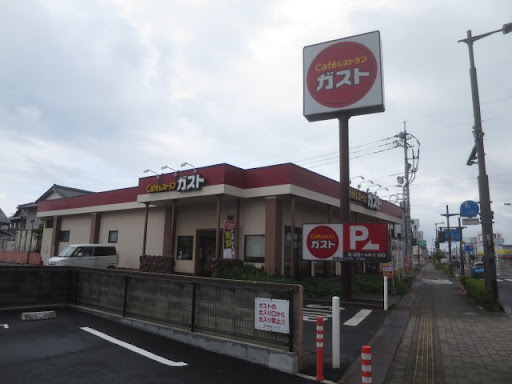国道184号線出雲神立通り沿いにあるガストです。マクドナルドのある「渡橋中央」交差点から東へ500m程度、「消防本部南」交差点の南側です。北側には「牛角」や「とりでん」があり、飲食店がひしめきあうエリアです。出雲市内にある2軒のガストのうちの1店です。 日曜日の7時すぎに訪れましたら、店内はガラガラに空いていました。営業時間は、平日は8時からですが、土曜…日曜・祝日は7時からとなっています。閉店はいずれも25時です。駐車場は店舗東側に30台程度、そして穴場として西側に5台分あります。 店内は広くもなく狭くもありません。出雲市内の店舗としては適切な広さでしょうか。ほとんどが4名掛けのテーブル席となっていて、おひとりさまでも4名掛けテーブルを利用できます。残念ながら、ガストのウリであるテーブルのAC100V電源は使用できないようにふさがれています。何かトラブルがあったのでしょうか、それとも長居防止対策でしょうか。 モーニングメニューは10時30分までです。ガストはワンコインのモーニングがお得と感じていましたが、今では500円以下のモーニングメニューは420円のトースト&ゆで卵セット、または小倉クリームトーストセットの2品しかありません。それでも、日替りではない日替りスープとドリンクバーがセットになっていて安いほうではあります。他に、モーニングの時間帯でも「チーズINハンバーグセット」や「から好し定食セット」、「マヨコーンピザセット」もオーダーできます。「チーズINハンバーグ」やから揚げは安定の美味しさです。500円以下の単品メニューは、最安値が200円の「コーンのオーブン焼き」です。 ハンバーグからステーキ、チキン、パスタ、ピッツァ、丼や冷麺などの和食、オムライスなどの洋食、カレー、焼きそば、つけ麺、スイーツとして、パフェ、プリン、チーズケーキ、パイ、ソフトクリーム、モンブランなど、一通り全てのメニューが揃っています。子ども連れの家族で迷ったらファミリーレストランという典型的なお店です。 ランチメニューは10時30分から17時まで、平日はさらにお得です。平日のランチタイム限定でお得にアルコールを楽しめるハッピーアワーもあります。ただ、生ビールを含めずいぶん値上げされて割高になりました。 配膳は、すかいらーくグループ共通のねこ型ロボットがやってきます。子どもには大人気でしょう。ただ、お皿を下げるのは人間のスタッフが担当します。ここもロボットが対応してくれると人件費がかなり抑えられると思います。会計もテーブルまたは店頭のセルフレジで行い、スタッフの姿は見かけません。年配のお客さんが多い割に、セルフレジが活躍しているようです。決済手段はQRコードや電子マネー、クレジットカードなどほとんどの手段に対応していて便利です。 ガストも全体的に価格が上がり、一般的なレストランとあまり変わりなくなってきました。そうなると、敢えてガストへ足を運ぶ必要もなくなります。ファミリーレストランのなかでは満足できる味と感じます。スタッフさんは元気...