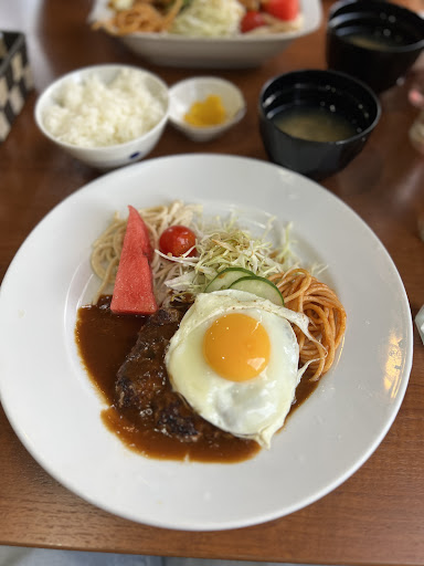Read more前々から、行こうと思ってもなかなか行けずに、今回行く事が出来ました。 ハンバーグランチを注文。 中身はハンバーグ、目玉焼き、サラダ、パスタ、味噌汁、ご飯、漬物。 ハンバーグに掛けてある当店オリジナルデミグラスソースを絡めてハンバーグを食べると旨い。 食後に、コーヒーも出...