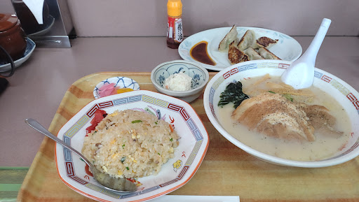 今回は "半チャン+味伸(とんこつ)+ギョーザ6個"をいただきました とんこつというスープは 口当たり柔らかく たくさんの方々のお口に合うと思う一方で 本場 博多豚骨や長浜ラーメンが好きという方には かなり物足りないと思います 麺は中太のちょい縮れ 可かもなく不可もなく 大きなチャーシューが2枚のせられて 箸で持ち上げると ホロホロと崩れるくらい煮込まれている様子 なにげに メンマが 強く自己主張せず 麺やスープと絡んでいい感じ 半チャーハンは しっとり系で ネギがいい塩梅 わたしには 辛味が少なく 卓上に一味や七味がないのが残念 ギョーザも しっとり系で ニンニクは入ってないのか とっても少ないのか。。。卓上には おろしニンニクがありますが ラー油は 配膳のときに 店員さんが持ってこられます 初めてで ピリ辛のラーメンを食べていないのですが 総じて優しい味わいで尖ってなく 年配の方から子どもさんまで 安心してリピートできるお店だと思いました また カウンター席だったので 厨房の様子が見聞きでき チャーハンや餃子と ラーメンを同じタイミングで準備されていると感じ 実際 わたしのときも 他の席の方達も 同じタイミングで配膳されていました これは素直に嬉しいです