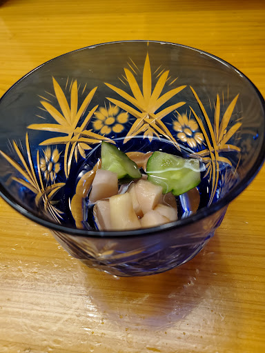 Read more静かな店内で、寡黙にお仕事をされる大将と、女将さん。握りのシャリが昔は醤油の色がついていましたが、全てのシャリが、白くなっていました。ネタの種類も以前に比べるとかなり少なくなっています。一口てまりサイズのお寿司はなんとも可愛らしく、一貫からでもコースにも柔軟に対応してもらえます。お醤油を刷毛で撫でてから出されるので、醤油皿などはありません。シャリのふんわりとした空気感やネタの味は美味しく頂けます。器も出西窯や有田焼など季節や料理に合わせて眼を楽しませてくれます。あらの煮付けや魚の骨を使ったおつまみが絶品で、お寿司以外の料理も工夫されています。季節にしか味わえない蟹やふぐ料理も、食べやすく提...