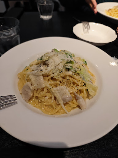 1つ気になる点としてはパスタをオーダーする際に聞かれるチーズ。 お願いすると初めからかけられた状態で提供されますが量もかなり多く、具材全てにかかってしまっており、料理としてのグラデーションは楽しめず食べ終わりまでかなり平坦な味になってしまいます。