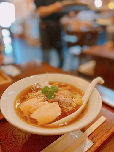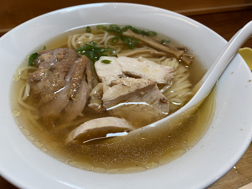 A sopa é feita com três tipos de frango e tem uma forte riqueza e profundidade de sabor, tornando-a uma sopa realmente deliciosa. Existem também três tipos de frango char siu servidos no ramen. Os noodles são noodles caseiros que se fazem todos os dias na loja, e ficam requintados com a sopa. De qualquer forma, é ramen de frango.