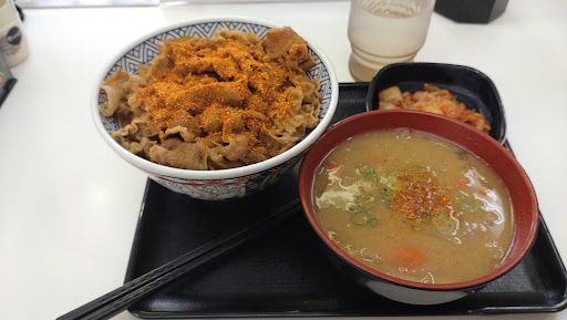 味は安定の吉野家 揺るぎないですね わたしは 牛丼に 七味をいっぱい掛けるスタイル! 吉野家の七味って 辛みが少なく旨味があるので これでもかって掛けても 美味しく好みです キムチも 辛み辛みが少なく むしろ甘さを感じるので 激辛好きの方には物足りないかも? 豚汁は しっかり煮込まれているのでしょう 薄切りの芋や大根には しっかりと味が染み込んでいます 豚肉を美味しく食べるって感じではないですけど