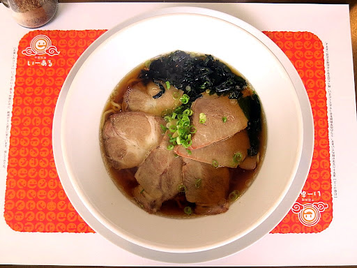具はチャーシュー、ワカメ、メンマ、ネギ。 チャーシューは豚モモ肉使用の煮豚。肉感が残っている。味付けは穏やか。 ラーメンのワカメは個人的にはあまり好みではない。