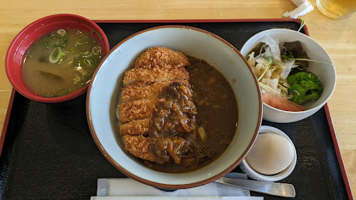 カレーうどん定食は、サラダと温泉たまごとお味噌汁のセット。 うどんに、普通のカツカレーがのっているだけで、カレーうどんって感じではなかったかな。 ボリューム、味ともに、満足するものではなかった。