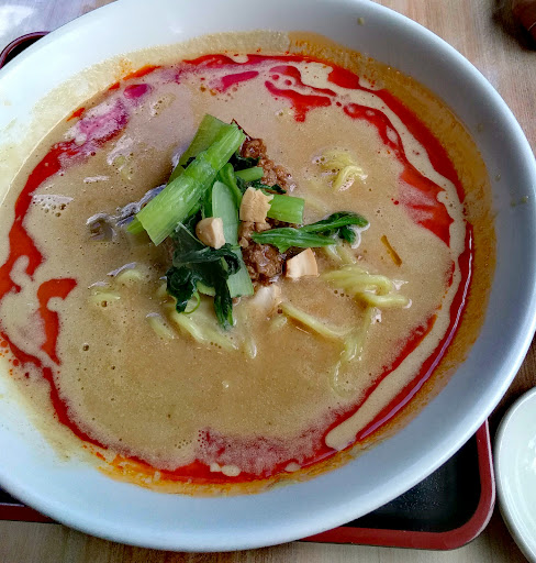 旨いです。個人的に酸味が効いている担々麺が好きで旨い店は大体酸味が効いています。(好みなので)ゴマも程よく効いていました。 野菜の種類も多く、いろいろな食感が楽しめました。特に野菜の名前が分からないのですが、生の山芋の食感を軽くしたような食感の野菜はサクサクしてよかったです。 ご飯もラーメン屋の白ご飯は水分量が少なく、白ご飯単体ではパサパサして旨くないのですが、ここは水分量が多くもっちりして旨かったです。 スープまで全部いっちゃいました。 また...