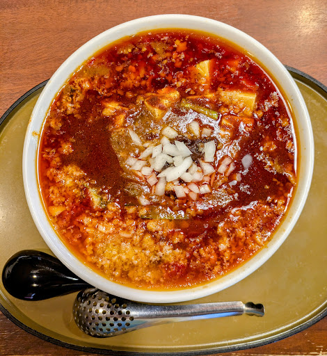 国道18号線上新バイパスを降りてすぐにお店がありました。 100円ショップと駐車場が共用のこともあり、土曜日の夕方近くでしたが駐車場は混雑していました。 お仕事の都合上、お昼ご飯のタイミングを逃してしまい、既におやつの時間帯でしたが、お店にはかなりのお客さんがおられ、人気店の様子でした。 今回は『全とろ背脂麻婆麺』を注文させて頂きました。 『中辛+33円』、『大辛+66円』、『激辛+99円』と、辛味増しが出来るとのことで、『激辛』にチャレンジさせて頂きました。 10分程でラーメンが出て来ると、真っ赤で如何にも辛そうな見た目で、これは辛そう…と思い一口。 麻婆豆腐の甘さと山椒などスパイスの辛さ、背脂のこってり感が非常にマッチしており、確かに辛いのですが、美味しい!!メニューの下部に(半ライスを注文して)麻婆丼もオススメと記載されていました。確かに、抜群に合いそうです。が、お腹が一杯になりそうだったので、今回は半ライスはお休みです。 麻婆豆腐が麺の上にかかっていることもあり、麺は何時までも熱々で、猫舌の私は辛さよりも熱さで苦戦しました。 麺はモチモチしており、スープや麻婆豆腐が良く絡み合い、とても美味しかったです。 その他、トッピングで『ネギ』と『チャーシュー』、おまけで『焼き餃子3個』を注文させて頂きました。 メニュー表には『ネギ』としか記載されていなかったのですが、店員さんから「白髪ネギか輪ネギ、どちらにしますか?」と確認があり、選べるスタイルでした。 白髪ネギで注文させて頂き、しっかり辛味調味料で和えられており、ネギだけでもピリ辛で美味しかったです。 チャーシューは、しっとりとした食感で味付けもしっかりしていましたが、小さなものが4枚で270円(40グラムで270円との記載がありました)と、やや高めの価格設定に感じました。 焼き餃子は、12個、6個、3個など個数を選べるスタイルで、やや大き目に感じました。 具材にしっかりと味付けがされており、何も付けずにそのまま美味しく頂けました。皮は、しっとりとした感じでした。 店員さんは元気良く、注文を復唱する際もハキハキとされておられましたが、『大盛り』まで大きな声で話され、やや恥...