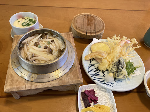 🥢 ・ 釜めし定食 松 (釜めし・天ぷら・茶碗蒸し・果物)