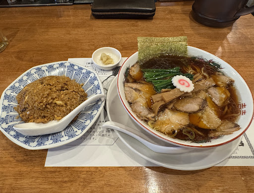 仕事で新潟県上越市へ 以前、この辺りに来たときはオーモリラーメン新井店さんを訪問 この日はまだ雪⛄️が路上に残るような寒い日で、以前長岡市で食べた「青島食堂」の生姜醤油を食べたいと思い周辺検索🔍 クチコミでは直ぐに満席🈵 駐車場が空いていないとか、人気店であることが伺えたので開店直後に訪問🏠 暖簾も出ていない10:50頃、既に車内でお待ちの先客が、、、僕はこの日4組目の来客としてスムーズに入店 さっそく券売機で、、、あれ?新札使えない💦 申し訳なく店員さんに旧札への交換をお願いすると 「ご不便おかけして申し訳ありません」 「そのまま並んでお待ちくださいね」ってとても丁寧にご対応いただきました🙇ありがとうございます 注文は ・長岡生姜醤油らーめん🍜 ・玉子チャーハン ・追い生姜🫚(無料) 玉子チャーハンは売り切れ必須とあったので、初訪問で食べられるのが嬉しい 店内すでに生姜醤油のいい香り 少し早い昼食なのに食欲あがるばかり🤤わくわくしながら待つことしばし...