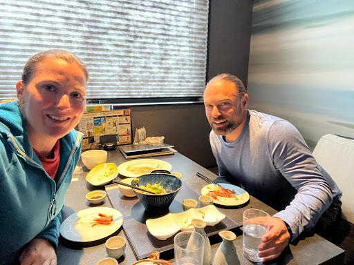 Lots of reasonably priced drinks & delicious dishes - pork & veggies, 5 types of sashimi, mixed tempura set. Parking on site a short walk from the aquarium & coastline. Friendly service even with our very limited Japanese (used translate on the menu). Traditional looking seating but with a back rest and a 'hole' for your legs so you basically sit...