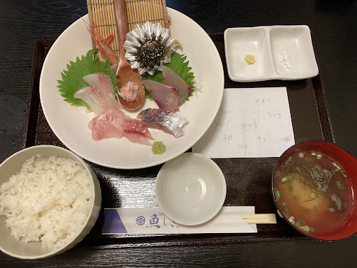 Read more開店5分前で3組ほど並んでました。 開店と同時に座ることはできましたが、とにかく暑い… 場所が入り口側だったからでしょうか? 提供も開店と同時に入店したのにもかかわらず、25分ほど待ちました。 海鮮丼なのになぜ…? ごはんは海鮮丼と謳う割にはお茶碗一杯より少し多い程度なので男性は大盛りの方がいいかもしれません。 あと酢飯ではなかったです。 お魚は普段海鮮丼で見るようなお魚ではないのでよかったです。 メダイ、とても美味しかった。 あと、お味噌汁がとても美味しかったです。 白身をお塩で…とのことでしたが、美味しかった。