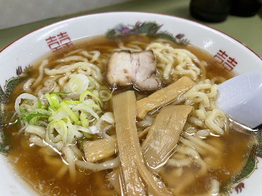 駐車場は店舗真横(西側)のスペースらしい、平日夜で空いてたのでそこに停めました、なければ駅の立体駐車場かな有料だけど。 自分が行ったときは先客は数組で空いてました、クチコミどうり愛想はよくないし注文も店員のペースで聞いてきます、席にメニューが無く壁に大きなのが1個あるだけです。 恐らく捌けるキャパを越えると注文を聞かないんだと思います、それでも大きな声で注文する客は受付るので黙って待ってる先客が呆れて帰るのが見受けられました。 そういう店だとわかって来店すれば何も気にならないので、色々気にする人は行かない方がいいかも。 水はセルフ。 肝心のラーメンは熱々で美味しかったです、麺は若干太めのちぢれ麺で茹で加減も丁度よく、スープは懐かしい感じで胡椒と相性抜群でした、チャーシューは少し小さいかな、あとはメンマとネギ。 お会計は出入口の辺りで、注文票はありません。 総じて思うのは、もう少しみんなが気持ちよく過ごせるか、またはもう少し安いか、値上げ前の価...