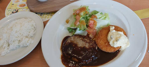 Read moreさっき朝ごはんに利用しました!自宅近くの朝ごはん。最近はファーストフードの朝ごはん利用が多かったモーニングセット過疎地と思うこの地域にファミレスの朝ごはん利用ができるのが嬉しいですね。今さら?って思う人もいますが、そう思う時期がこの地域に有りました。あちこちにその名残りの店舗跡があるのがその証拠。メニューやサービスはスマホ時代の今、ググればすぐに分かるので標準的に良いサービスのお店です!勿論ランチに、夜食まで?の時間幅がある様です。地元に根付いて随分経つお店。幹線沿いが嬉しい。最近はゲリラ豪雨、冬ならゲリラ豪雪成る異常気象。復興優先度は幹線沿いなので周りが見えなくなる中で黄色の看板が見えると安心します。駐車場も交差点の角地の利点、出入口が2つと成って楽だと思う。ただこっちの人のモラルの問題、幹線沿いの通行への迷惑行為?でも自己都合優先の複数車線を平気で跨ぐ合流を強行するね。事故発生の問題に成るからの判断が必要かな?確か裏道に抜ける場所でも有るから少し考えればいいんだが、。今回は朝食利用だけど、ランチや夕方にまた利用...