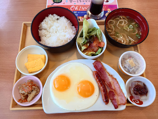 朝食のメニューは、セットから単品まで、量のバリエーションがあっていい。目玉焼き定食と焼鮭定食を食べたけど、どちらもガストや牛丼チェーン店の朝食メニューと比べて品数が多く豪華に見える。ご飯が美味しいし、量と質ともに満足のいくものだと思う。これを660円で食べられるのは、とてもリーズナブルだと思う。朝食時間帯のドリンクバーは220円で、飲める種類も多くて、こちら...