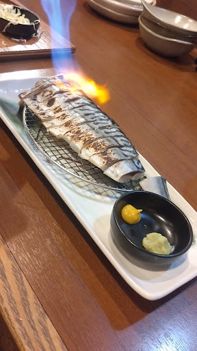 ○炙りしめ鯖593円 こちらも目の前で焼いてくれ、更に焼き具合の問いかけもありました。意外性は面白い。 ただ、しめ鯖があまり浸かってなく柔らか過ぎなのと味が薄く、意外性だけだったのが残念