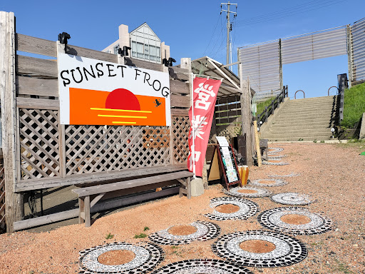 Read more看板には「海の家、喫茶、カフェテラス」とあり、海としてはシーズンオフということもあってか、土曜日の10時すぎに訪れて、ほかに客はいなかった。 店舗は手造り感にあふれる、開放感があって居心地のよい空間だった。 席は店内とテラスに半々ぐらいという感じ。店内もいいけど、テラス席がとくに開放感あっていい感じ。 目の前が海で、ちょっと小高い場所に店があって、眺望はとてもいい。 昼間でもいいけど、店名になっているとおり、夕日が沈む時間帯に訪れたら、きっと間違いなくもっといい。