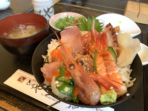 Read more海を見ると心湧き立つ気がしてくるのは、山国住民の性質なのであろうか。凪いだ海面、波の音、潮の香りを体感すると子どものように嬉しい気分が横溢してくるようだ。 しかし、新潟に住む息子が、 「新潟で使う車や自転車は新潟で買え」 と言っていたのを聞き調子のよいことは言えないとつくづく感じさせられた。なんでもかの地出身の友人によると、海岸沿いは塩気が強いので金属ものは耐塩加工を施したものでなければ、あっという間に錆びてしまうとの事だ。海沿いに住んだこともなく海の良い面しか見た経験しかないものが簡単に言ってよいことではないのかもしれない。 能書きはさておき、直江津にいる。海産物補給のため、しばらくぶりの訪問だ。県外への移動は好ましくないのかもしれないが、東京や名古屋など大都会へ行くわけでなし、感染者の少ない田舎から田舎への移動であれば迷惑をかける事もなかろう。要はどこへ行くか、ではなくどのように行動するか、なのだから。 直江津という街は存外に広くてなかなか海に行き当たらない。山の方から赴くわけだから当たり前なのだが、もう少しもうちょっとと車を進め、佐渡汽船ターミナル辺りに到達してようやく潮くさく海っぽい雰囲気となってくる。やはり海はよい。そしてここからなお10分ほど行ったところに目的の店はある。 「といちや」 海沿いの街道を北上し、黒井という住宅地のほぼど真ん中に位置する地にある寿司屋さんだ。狭い間口から昔ながらの町屋がそのまま保存されている事がわかる。寒気対策であろう二重の引戸を抜け内部へ。5席ほどのカウンターと小上がりがある。開店直後であったため小上がりへ通してもらえる。ランチメニューはあなご天丼、天丼、ねぎトロ丼や定食ものが用意されているが、私はもちろんデフォルトメニューとする。 「海鮮丼」980円 メニューにまぐろ、大トロ、サーモン他との記載があるだけでどのようなものが登場するかわからなかったが、想像以上に煌びやかな品であった。黒く平らな盃のような丼に酢飯そして数々の刺身類。ハマチ、カツオのたたき、サーモン、甘海老、タコ、ねぎトロ、湯引きハモ、とびこ、明太子、イカおくらなどが所狭しと並べられている。鮮度が高いのは当たり前だろうが、そのほどのよさがよい。酢飯の酢の効きかたよし。味噌汁もよし。これで980円は長野では絶対に出会えない。 平日という事もあろうが、それでも夏休み入りしているはずの直江津海岸にひと影はまばらであった。歩くには具合がよいが、もう少し人出がないと、暑い...