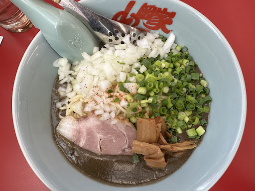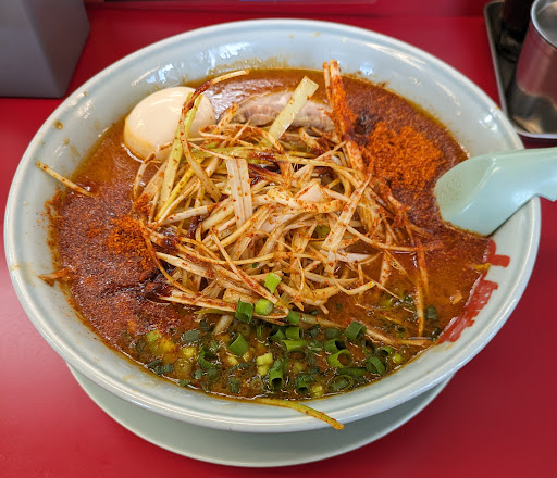 Read more初の山岡家。全国各地にあるようで所々で見かけますが、今回初訪問。まず、カウンターがコロナ対策で一つ一つ仕切られたのが目に入ります。 そして、入店時にちらっと見えたので分かりましたが、入口入って振り返る感じで、券売機がありました。普通のメニューならサッと目に入りますが券売機は操作しないといけないので、それなりに種類ごとに並んでいるとは思いますが、初訪問の私には何があるのか頭に入ってきません。とりあえずはおすすめの中から、とても辛そうな麺をいただきました。 写真と同じですが、うわっ!てくらい、唐辛子が振ってあり、ネギに使用されていると思われる胡麻油の良い香りがしました。そしてまず一口目にスープ飲みましたがむせました(笑)けど、期待せずに入店したからか意外と美味しく思えました。麺は九州育ちの私には苦手な太麺でしたが、それでも他店よりは美味しく思えました。チャーシューはJAF特典で角チャーシュー乗せてもらいましたが美味しかったです。一方で、デフォで入っていたチャーシューはイマイチでした…。とても辛い麺でしたがあっさりと完食してしまい、スープは胃と血圧のことを思い飲み干すまではしませんでしたが、美味しくいただきました。 次は、定番のやつ食べてみたいと思います。(何が定番なんだろ…)