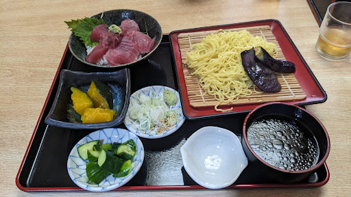 Read more近くで仕事を済ませ、お昼ご飯でこちらのお店に12時半ごろに訪問。 1人での訪問だったため、カウンター席に案内いただき、日替わりメニュー?? 平目刺身丼とざる中華そばのセット ¥1,000- を注文。
