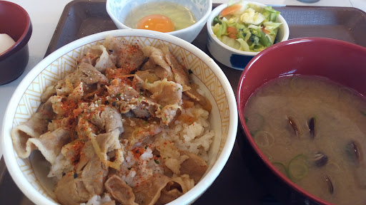 Read more元旦は、朝7時からの営業らしい。 奇しくも新年1号の客となった。 まぁ、それは光栄の至りかなぁ。 建物は古いみたいですか、店内は、 広く明るく小綺麗で好印象だった。 女子店員ふたりのハキハキ&笑顔の 接客も良いなぁと思ったりしたわ。 白髪ねぎ牛丼(並)の注文だが、 なんかご飯🍚の盛りが多いぞぉ。 とん汁も、なんや、具が多い…? よもや、『新年の特別サービス』 でも、あるまいものを。 新年早々、食べ物を残すのは嫌や。 必死のバッチで、かっ込んだわ。 ともあれ、白髪ねぎ牛丼は旨辛で、 マジで美味しいですね~ご馳走様。