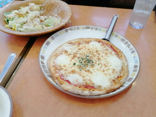 Read moreアル・プラザ城陽 建物の中並びにあるイタリア料理 お値段がお安く、気軽に入りやすい。 お昼ごはんランチを食べに行ったら お店は、空いてました。 メニューが決まったら、ウエイトレス を『ピンポ~ン』と呼び 注文は、声をだして頼むんじゃなくて、 紙とボールペンで書いたメモをお渡しする。 前回行った時と同じやり方でした。 毎回注文は、似たメニューを頼みました。 *イチオシ↚マルゲリータ 私の大好きな、ミニフォカッチャです ミラノドリアを食べた。 *チキンのシーザーサラダLサイズ これまた美味しい。 リブステーキとライスのLargeは 他の人が食べました。 落ちついたお店なので、ゆっ...