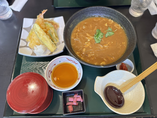 メニューが沢山あって迷ったけど、カレーうどんと天ぷら定食をお願いしましたー。ちょうど先客もいらっしゃったので10分弱で配膳されました。 おおー、大きな器のカレーうどん、天ぷら、ご飯まで付いて見た目だけでも癒されます。...