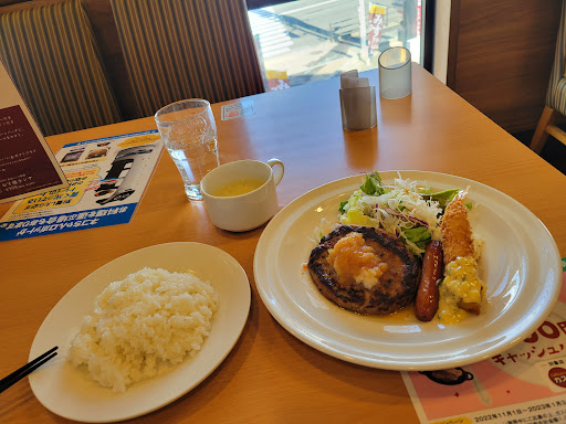 門真店では初めて入りました。 ガスト自体家の近くに無いのであまり行くことはないのですが、免許更新の時間潰しに寄りました。 ステーキガストとガストが隣り合わせになっていて、まず入り口入って左側がステーキガスト、右側かガストでした。 今回はガストに行きました。 コロナ対策として入り口でアルコール消毒をしてから店内へ。 喫煙席はなかったと思います。 ガッツリ食べようと思ってた訳ではないので、カットステーキのおろしポン酢を注文しました。 嫁と一緒に来ていたのですが、嫁はフォンダンショコラのバニラアイス付きみたいなのを食べていました。 カットステーキは味が濃くてとても美味しかったです!値段は990円 量と味を考えると少し高い気がしました。 濃い味が好きですが、それでも少し胡椒辛くて口の中がピリッとしました。 一緒についていたハッシュドポテト!とても美味しかった!単品で欲しいくらい。 フォンダンショコラはとても濃厚で美味しかったです。 まだ時間が余っていたので山盛りポテト299円を注文。 ソースはマヨネーズとケチャップ。 普通に美味しかった。しかし、普通に食べていたと思うのですが、半分食べた頃くらいにソースがなくなりました。 テーブルに醤油があったので醤油で食べました。 なんと、個人的にはポテトを食べているのにお餅を食べているような感覚で(味が)新感覚でした。 機会があればまたいこうと思いま...