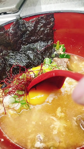 〆は カルビクッパを。 お肉やお野菜ゴロゴロの熱々スープの真ん中に おにぎり状のご飯と卵黄♪ お腹イッパイに肉喰ろぅた直後でもペロリと イケる美味しさw