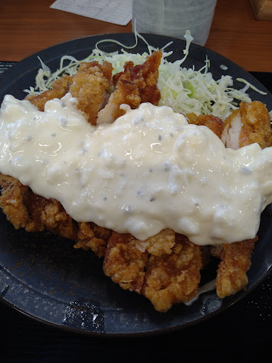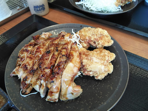 Read more令和4年8月8日訪問 からやま自体に久し振りの訪問。 お昼少し前に入店しましたが 次から次へとお客さんがやって来て 相変わらず人気の高さがうかがえ ます。 いつもチキン南蛮ばかり食べていたので今回は違うモノをとゆう事で、私は二種盛り(大判焼き鳥と唐揚げ2個)定食、相方は期間限定の赤唐と普通の唐揚げ2個づつの相盛り定食をオーダー。 赤唐は辛いけど旨味もあってビールが欲しくなるやつです☺ 大判焼き鳥もタレが濃すぎず甘過ぎずで旨いですね。 暫く来ない間に以前は大盛りご飯無料サービスしてくれてたのにプラス30円になってました。 今のご時世、仕方がないですね。 けど鶏が旨いのでまた行きますわ。