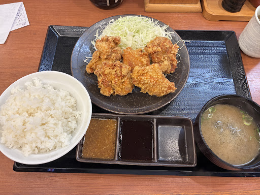 Read more運転免許更新の帰りに『から揚げ定食590円〜』の看板にひかれて入りました。 自転車だったのですが自転車置き場も狭くなく、幹線道路沿いにも関わらず、平屋建ての上、かなり広い駐車場なので車での利用は便利だと思います。車椅子でも問題ありません。